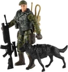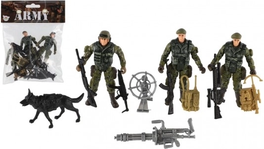 El paquete contiene tres soldados, un perro y otros accesorios tácticos para una experiencia de juego completa.