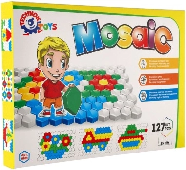 Sumérgete en un mundo de colores y formas con este juego de mosaico. La base es blanca y recuerda a un panal de abejas, sobre la que se pueden colocar piezas de plástico de colores. El mosaico fomenta la creatividad, las habilidades espaciales y el desarrollo de la motricidad fina de los niños.