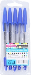 El práctico juego incluye 5 bolígrafos desechables con tinta azul, ideales para la escuela, la oficina y el uso diario. Ligeros y cómodos para escribir, fiables para notas rápidas y textos más largos.