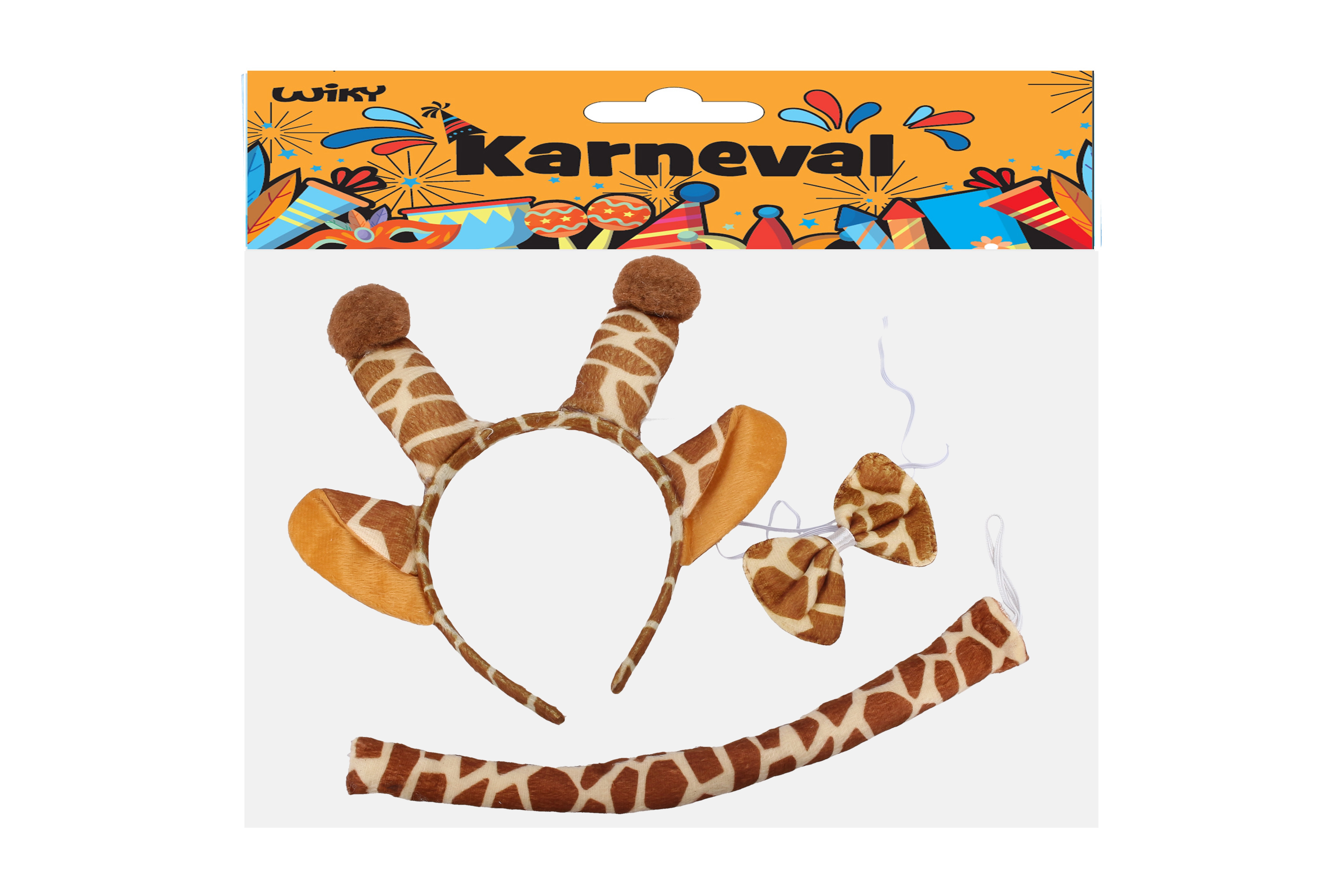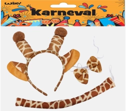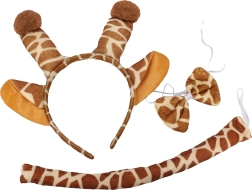 ¿Buscas una transformación de carnaval rápida y llamativa? Con este set de jirafa tendrás todo lo necesario en un solo paquete. La diadema con orejitas, el lazo para el cuello y la cola crean un look divertido que llama la atención a primera vista. Es un accesorio genial para niños y adultos, y combina con vestidos, camisetas u overoles.