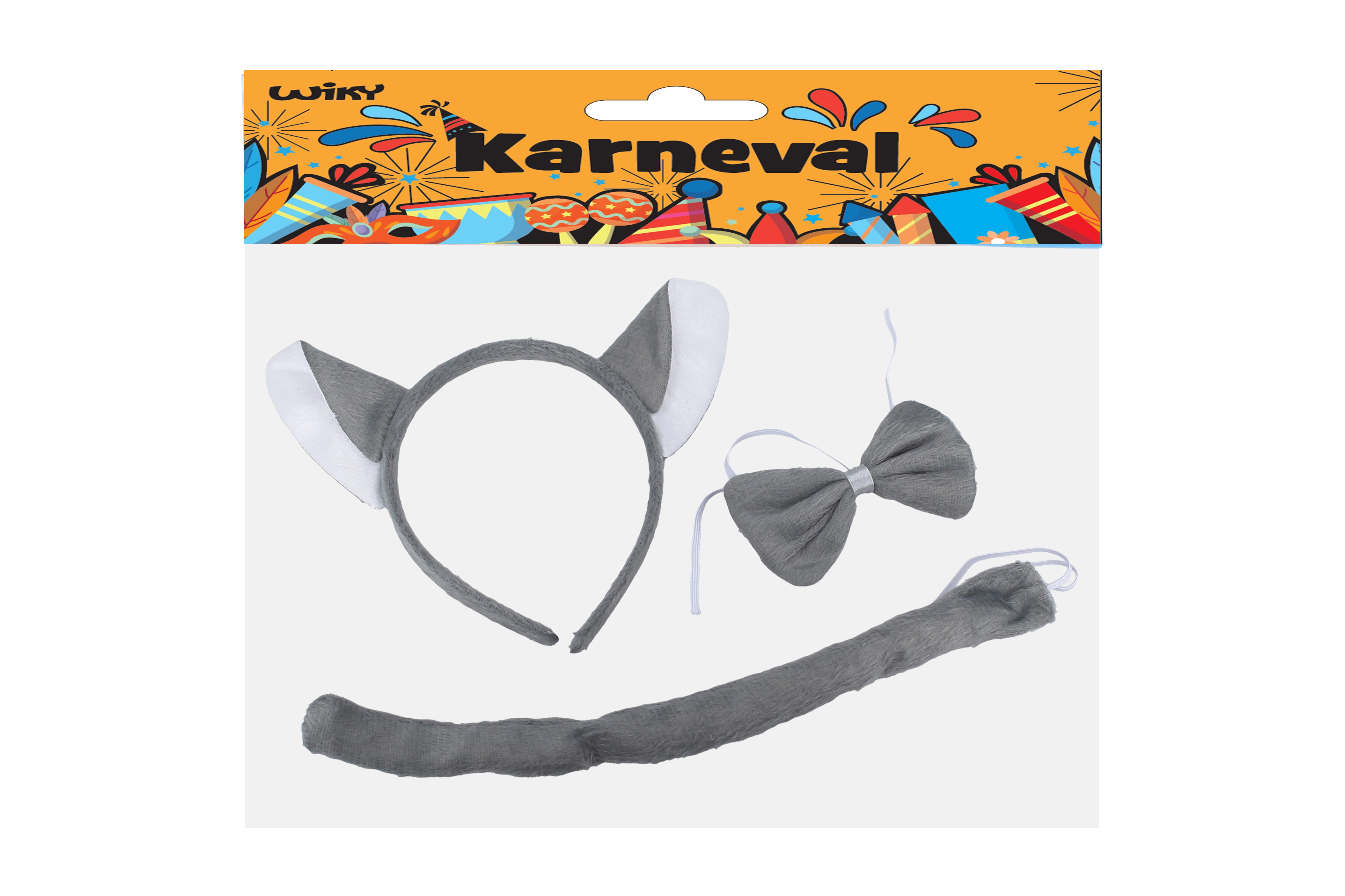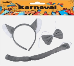 - Contenido del set: diadema con orejas de lobo, pajarita para el cuello, cola