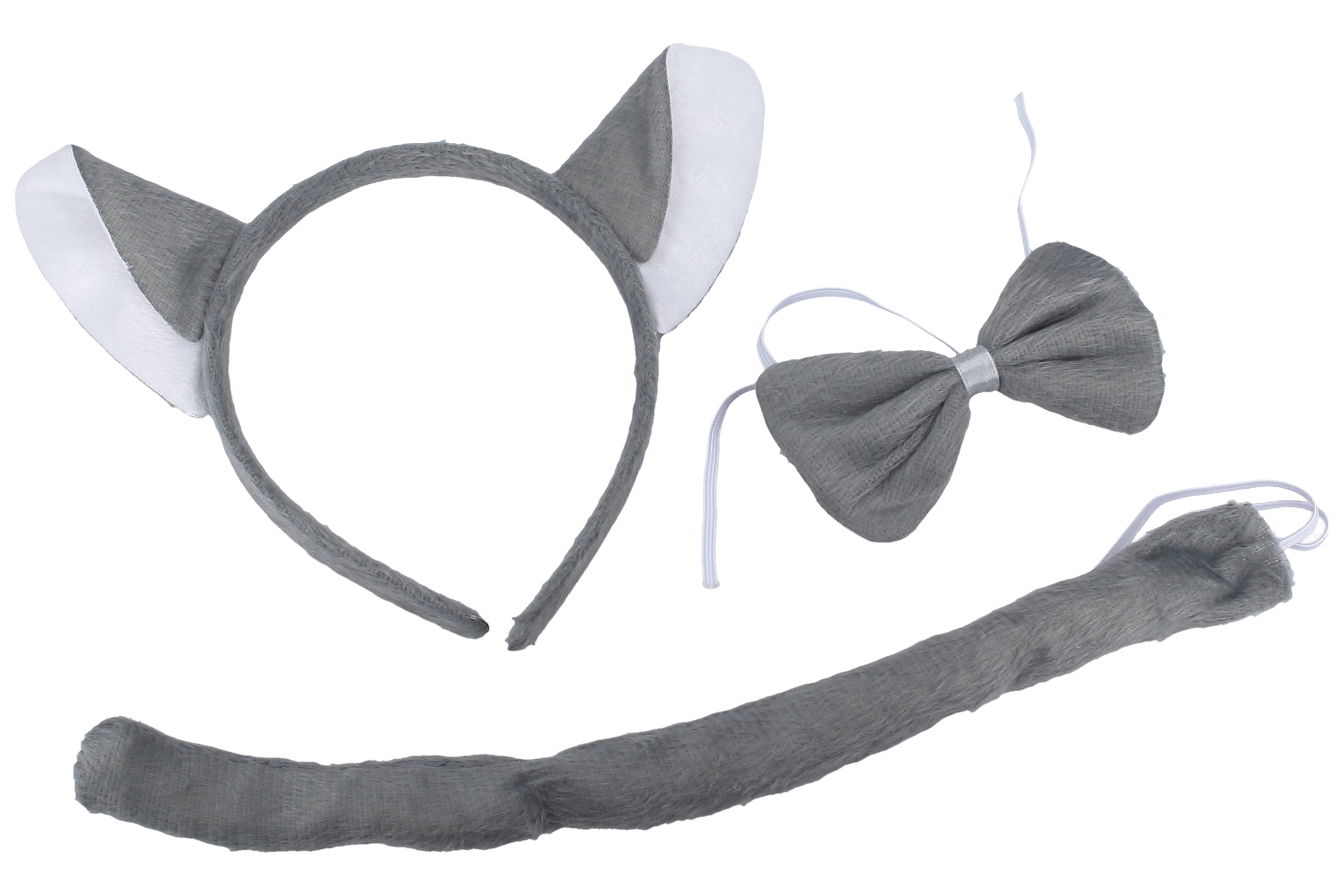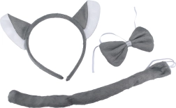 - Diadema con orejas, pajarita para el cuello, cola
