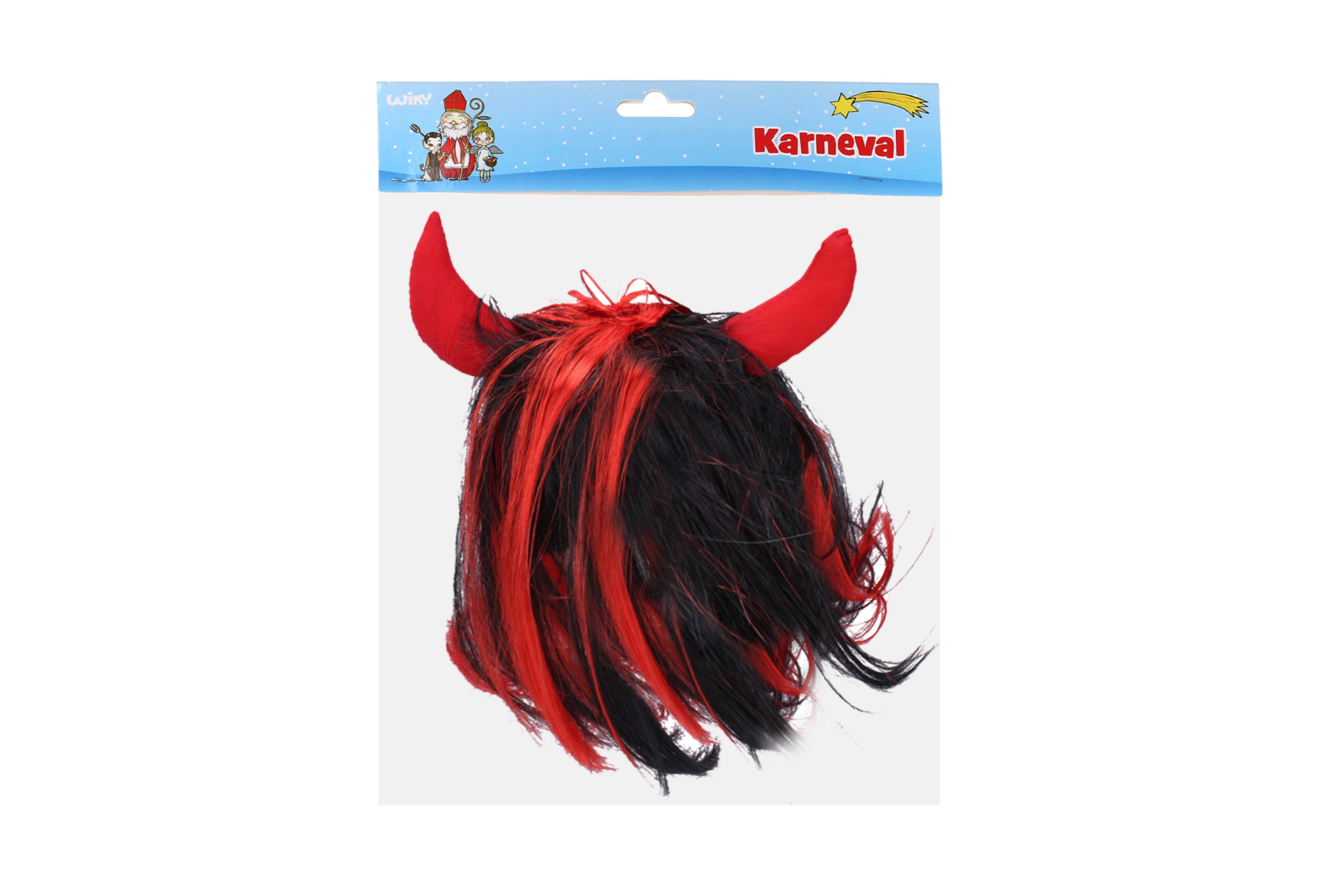 - Peluca de disfraz con cuernos