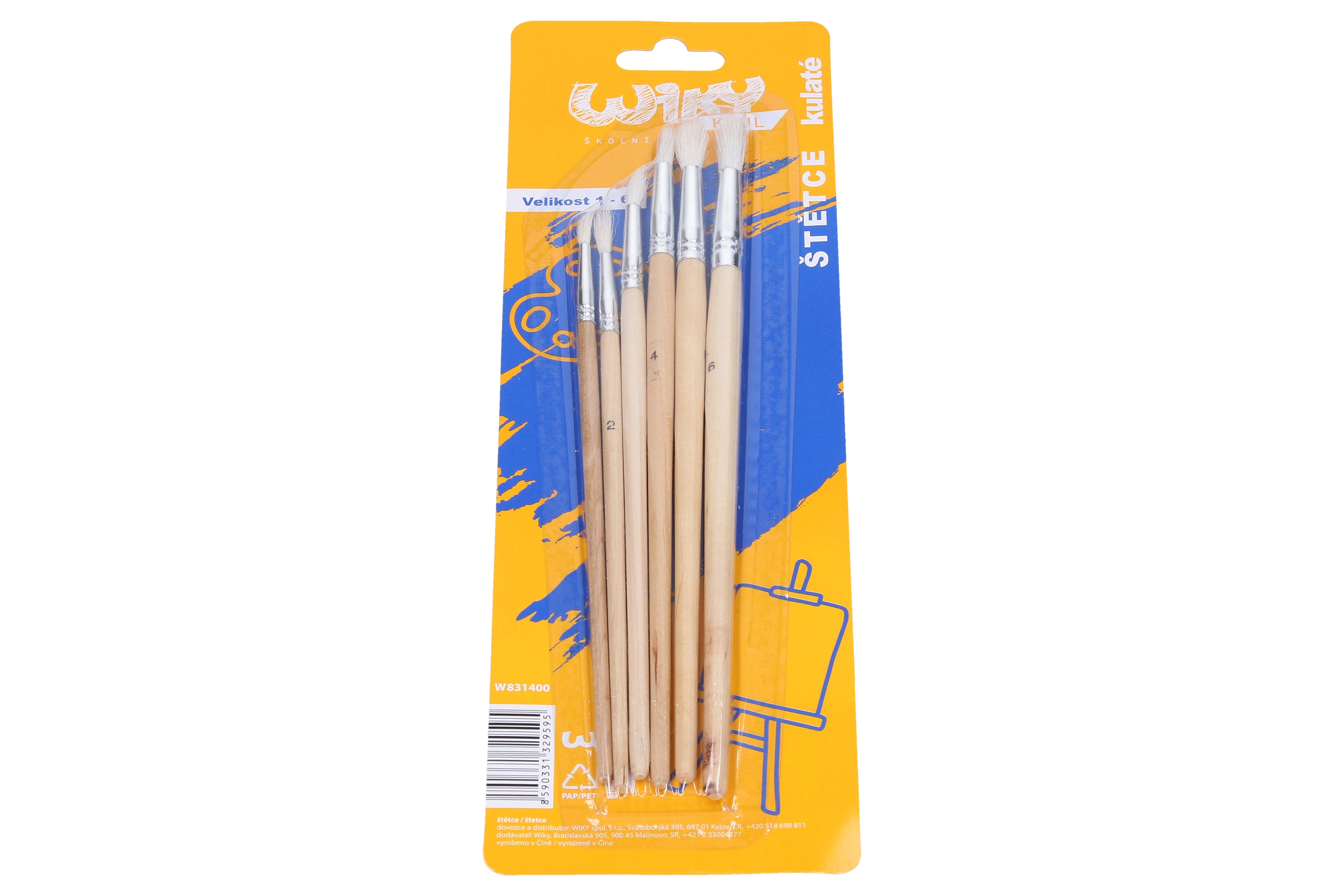 Juego universal de pinceles redondos en tamaños 1–6 para escuela, hobby y estudio. Ideal para acuarela, témpera y acrílico. Incluye 6 pinceles redondos para trazos precisos y superficies amplias y un agarre cómodo al pintar.