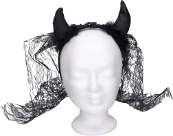 Dale a tu disfraz un toque infernal con estos cuernos de diablo negros con velo. La práctica diadema garantiza una sujeción cómoda y segura en el cabello, mientras que el elegante velo aporta un efecto misterioso y llamativo. Perfectos para carnaval, Halloween, fiestas de empresa y eventos escolares.
