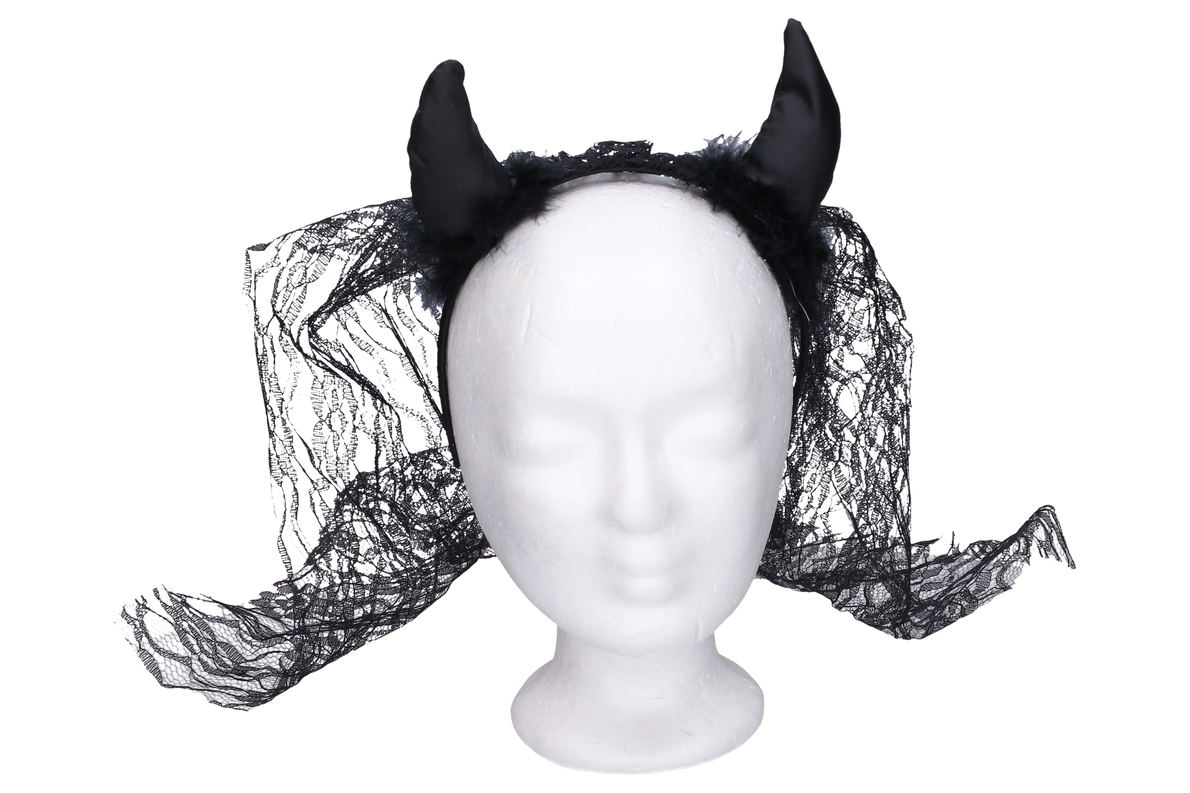 Advertencia: No es un juguete. Apto como accesorio de disfraz para adultos. Contenido del paquete: 1× diadema con cuernos y velo.