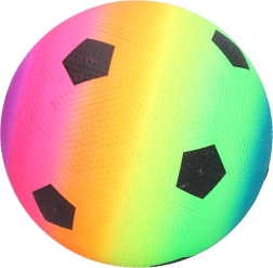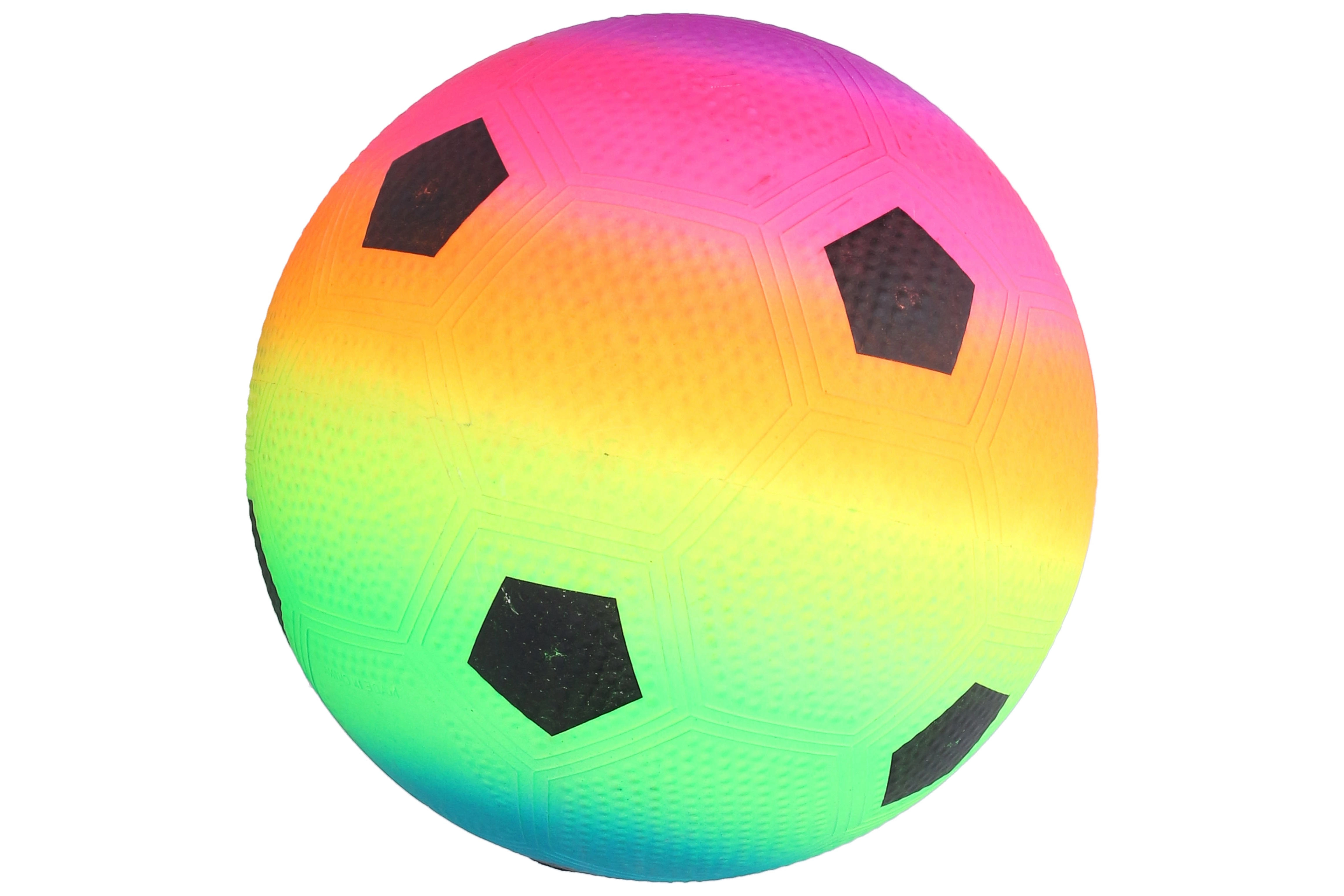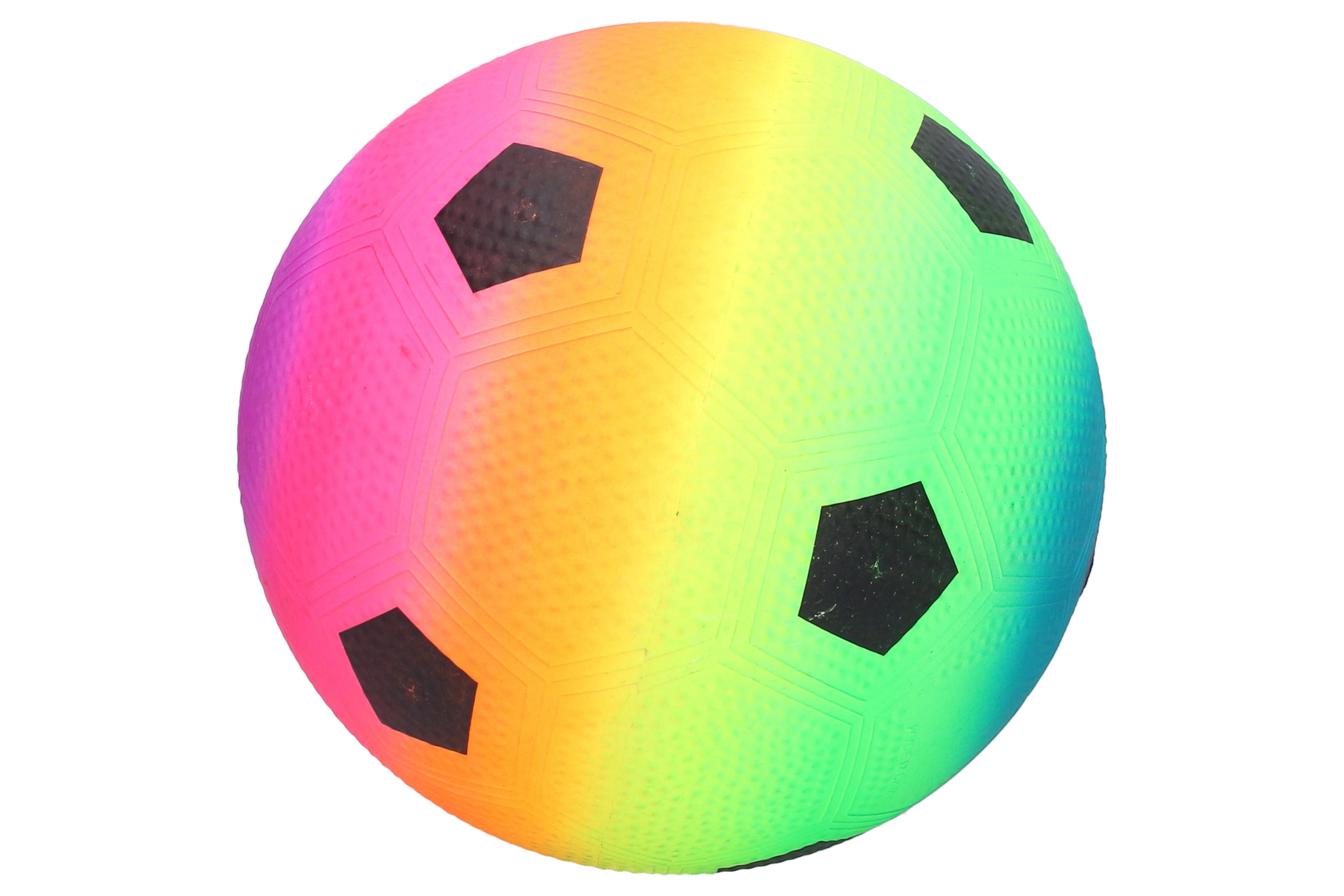 Balón de fútbol de goma con un diámetro de 22 cm, ideal para todos los pequeños aficionados al fútbol. Su aspecto colorido llama la atención y aporta diversión en cada partido.