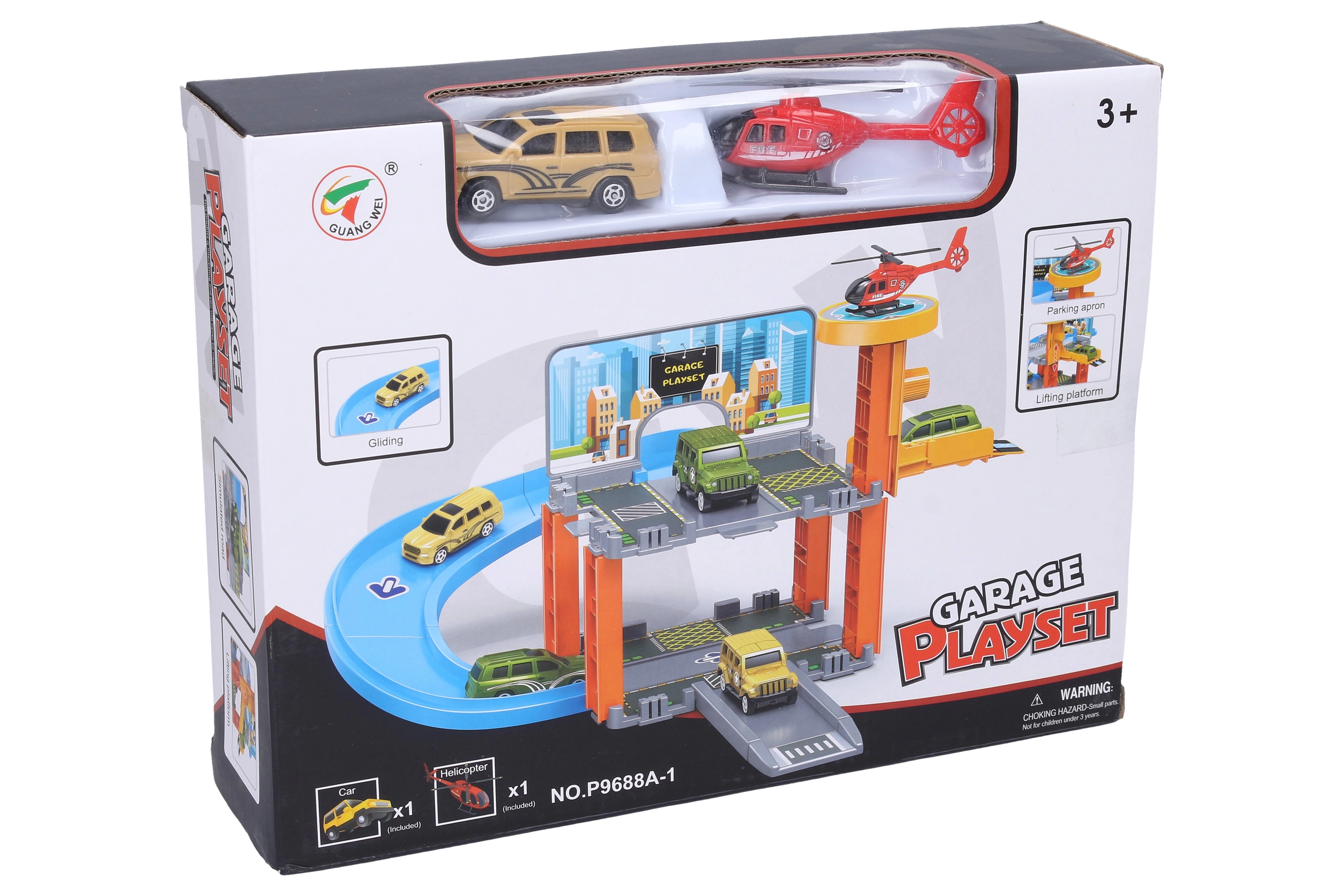 El set incluye todo lo necesario para jugar de inmediato: un coche con ruedas libres para una conducción fluida, un helicóptero para vuelos y aterrizajes llenos de acción y un práctico helipuerto. Ideal como regalo que entretiene durante horas.