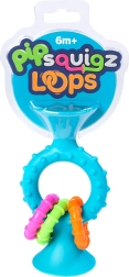 PipSquigz Loops es una ingeniosa combinación de mordedor y sonajero que atrae por sus colores, formas y sonidos. El mordedor de silicona suave masajea delicadamente las encías, mientras que tres anillos móviles suenan agradablemente e invitan a la exploración. El juguete está diseñado para fomentar el desarrollo sensorial y la coordinación mano-ojo.