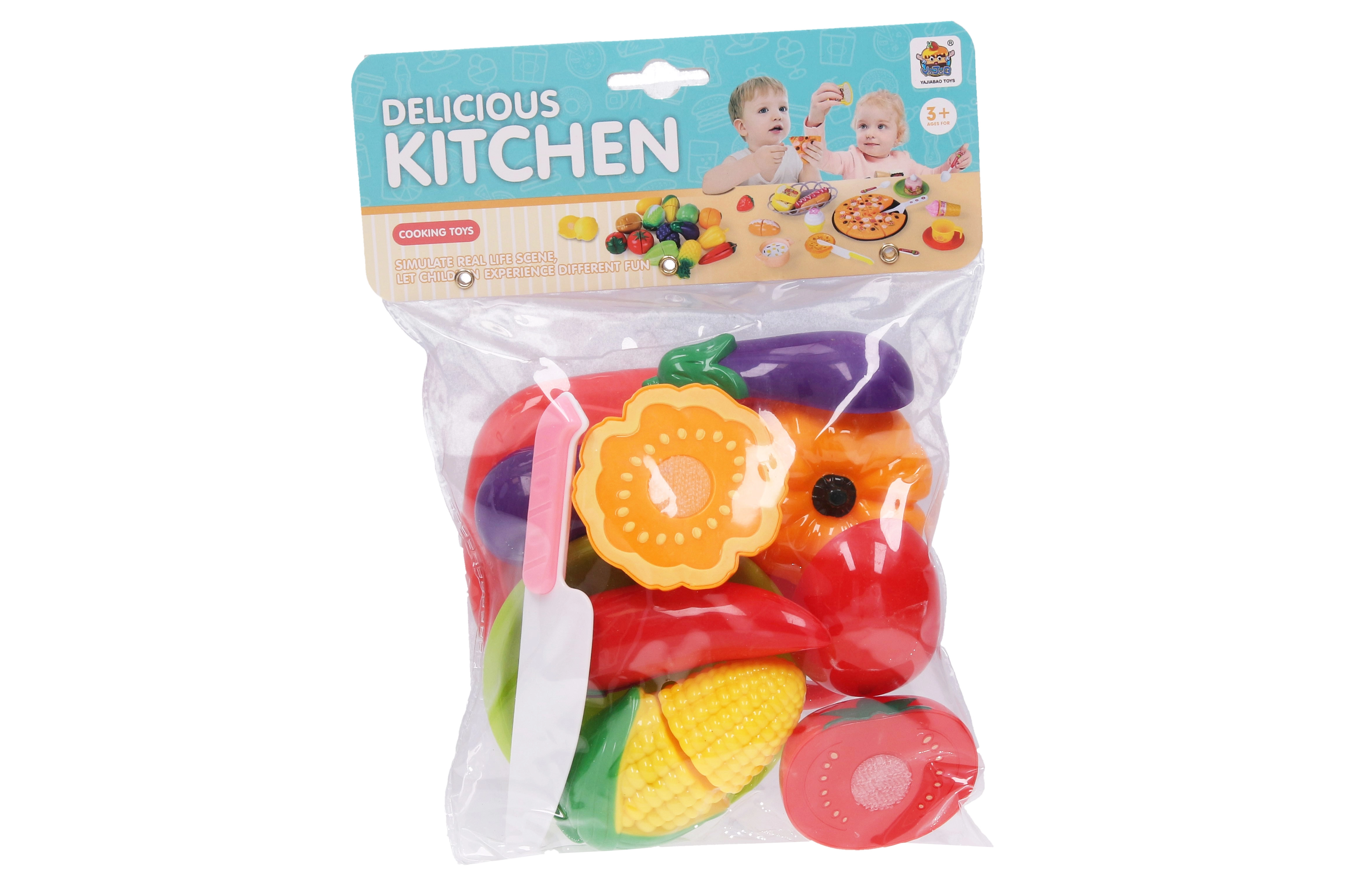 Los alimentos para cortar ofrecen dos variantes: verduras y frutas. Están diseñados para que los niños puedan usar su creatividad y desarrollar sus habilidades culinarias de forma lúdica. Ideales para el juego interactivo, estos sets fomentan la imaginación infantil y mejoran la coordinación mano-ojo.