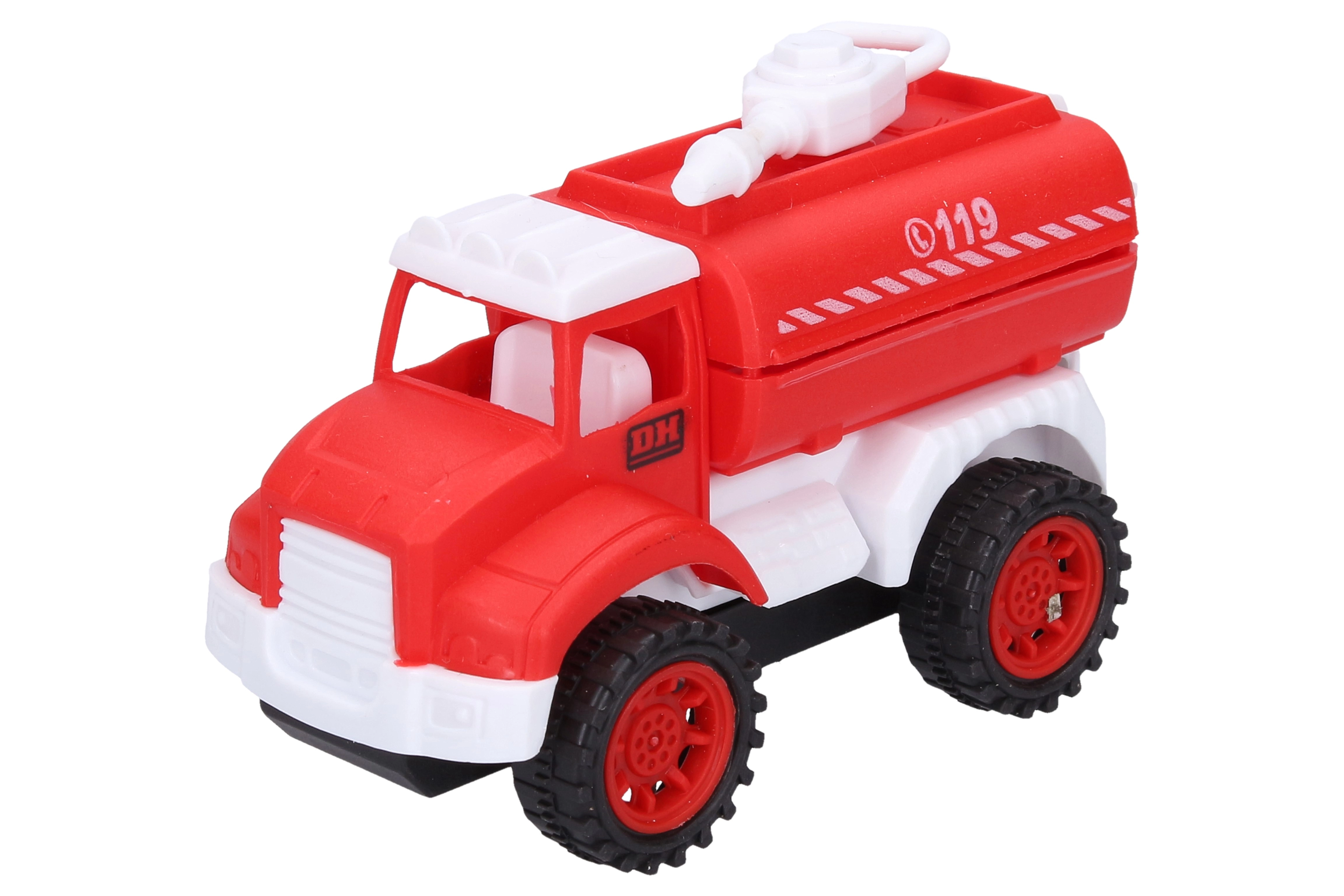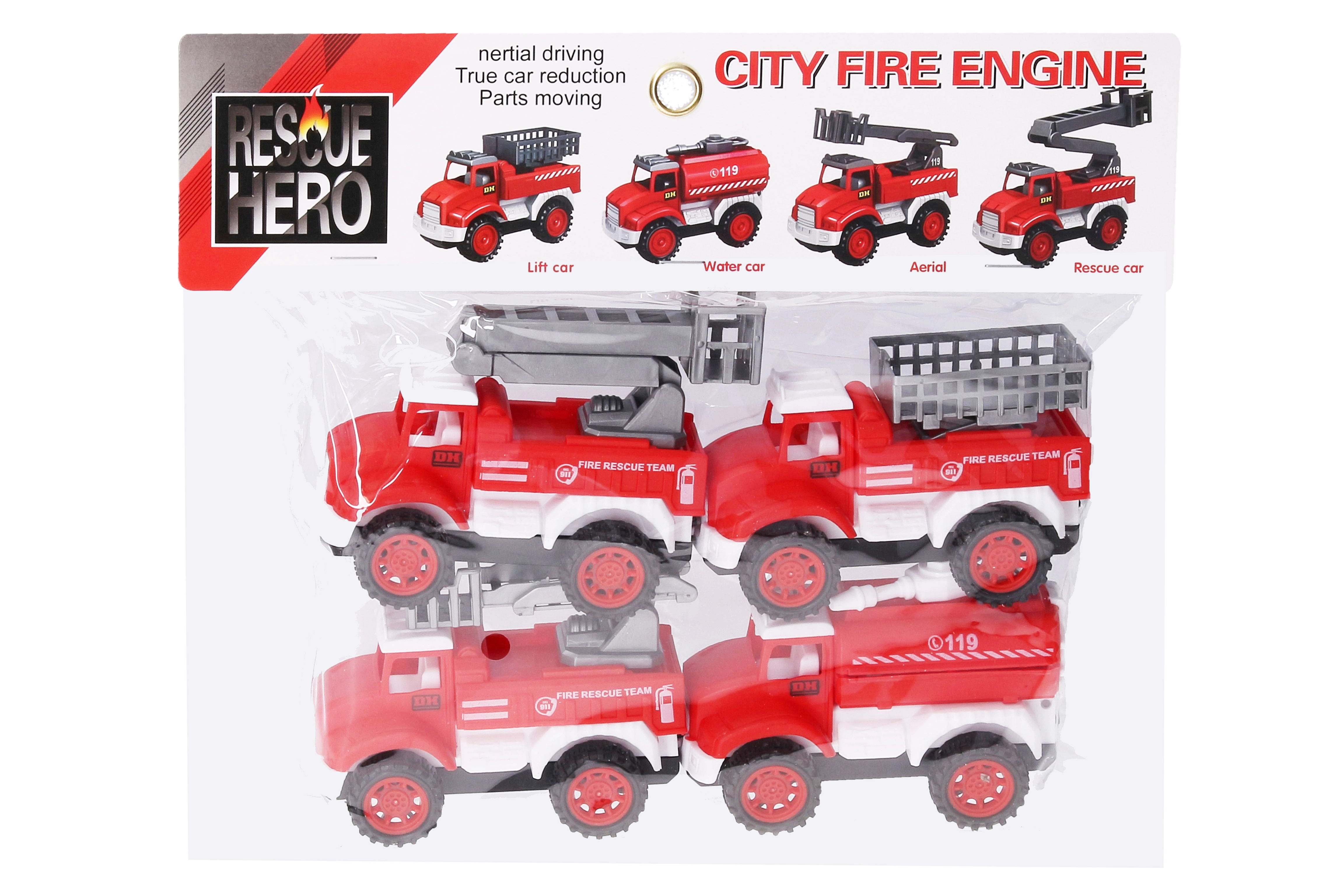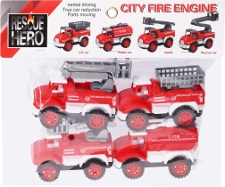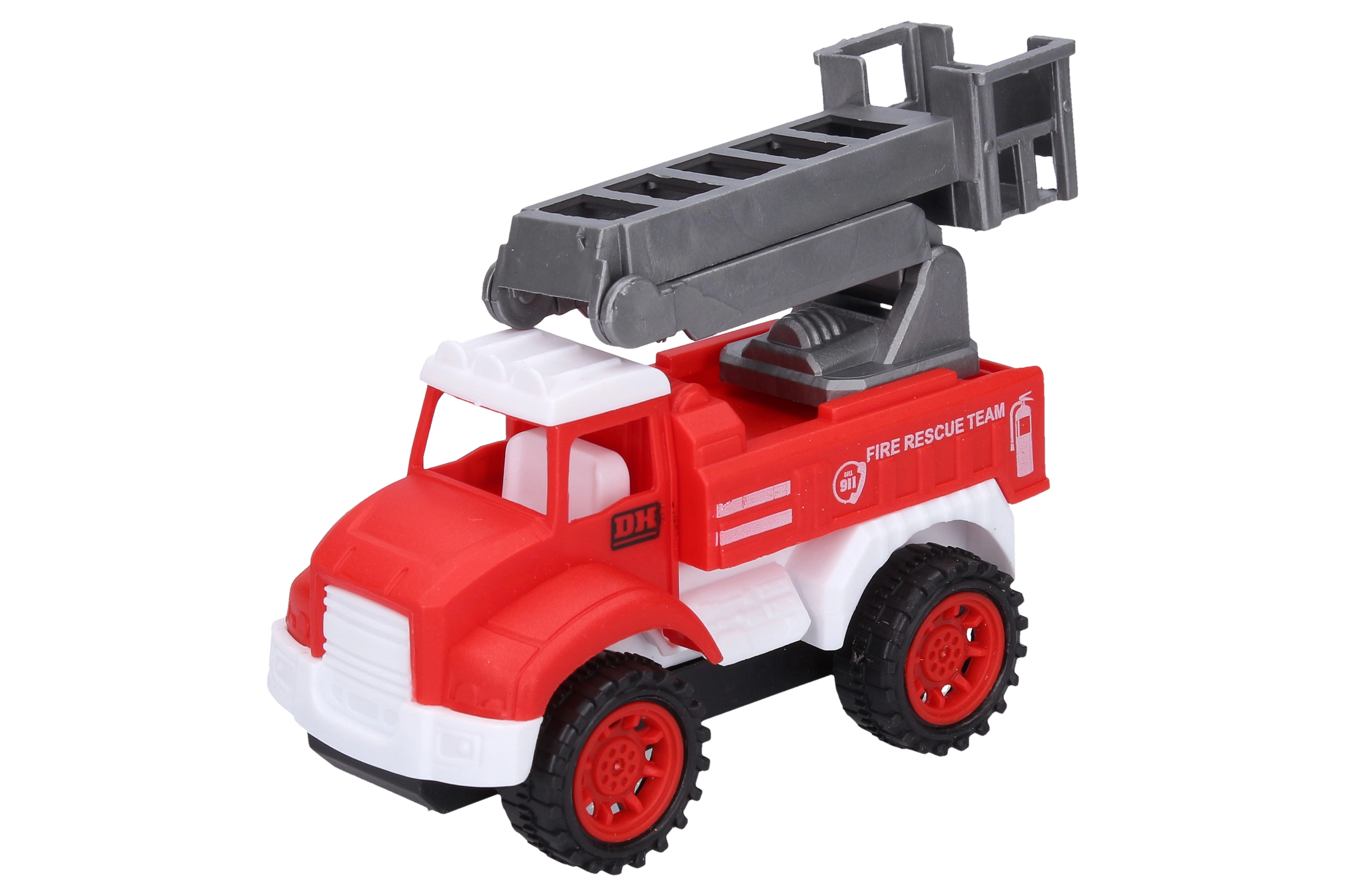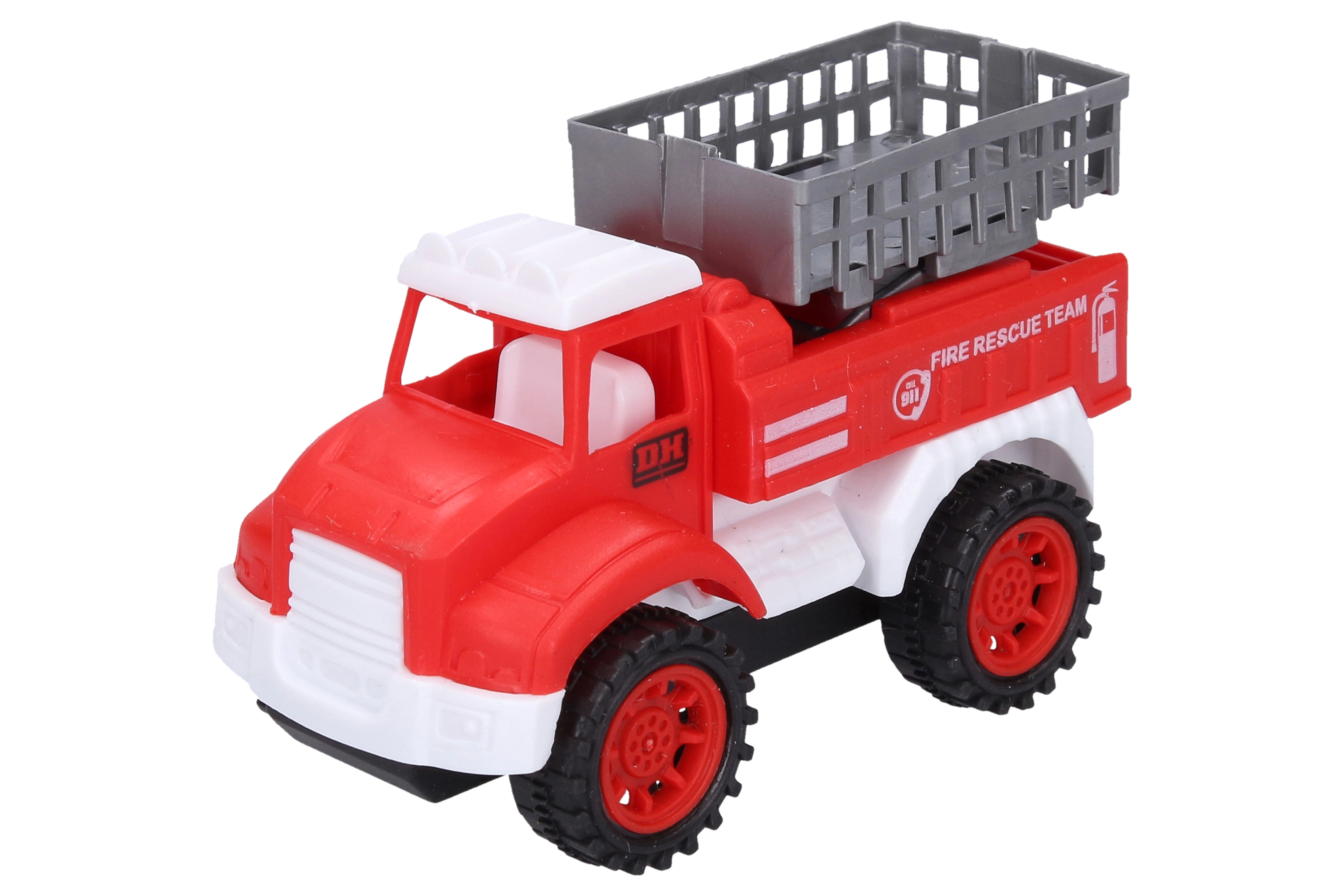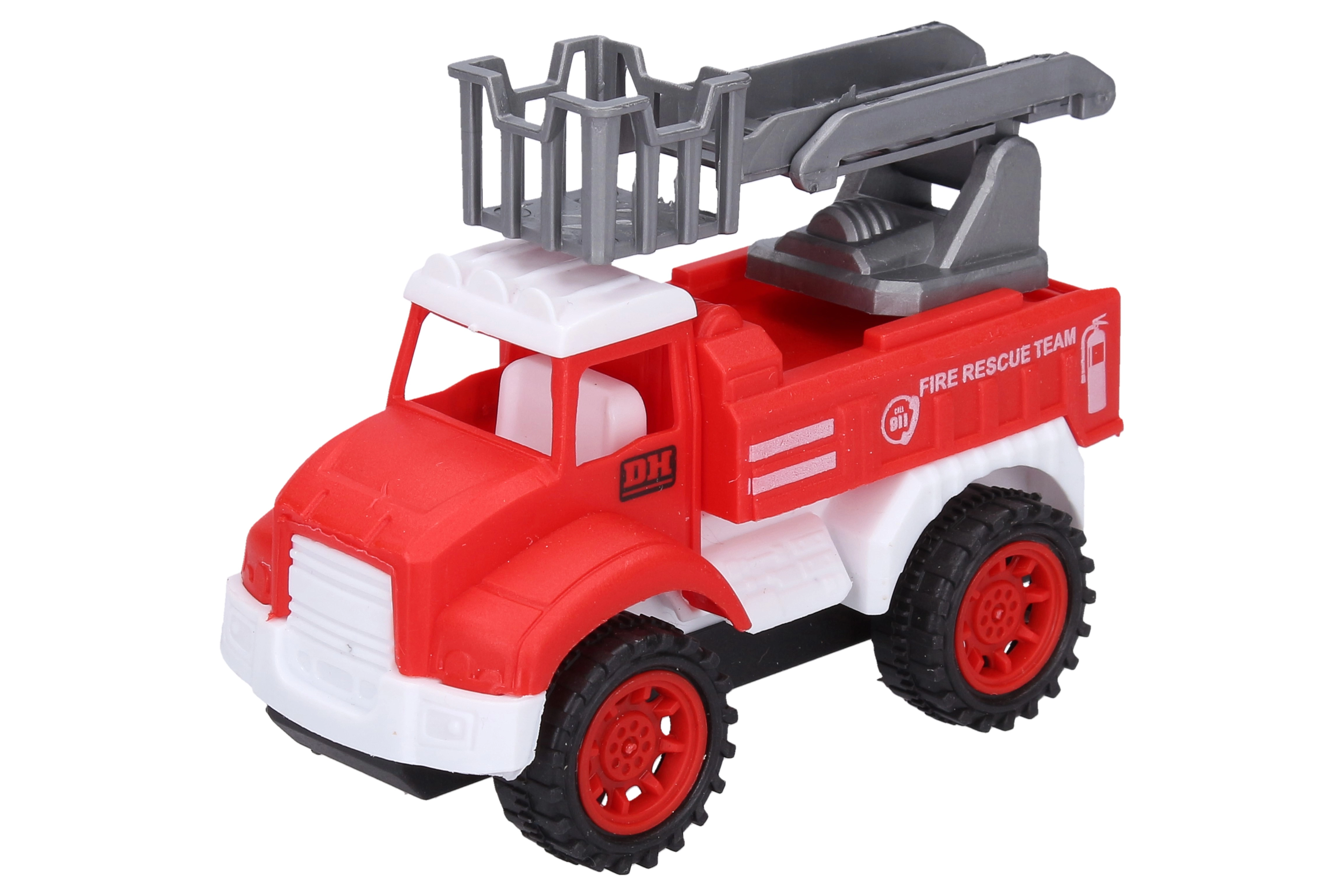 Este set incluye cuatro cochecitos de bomberos rojos de 10,5 cm de longitud, cada uno representa un tipo diferente de vehículo de bomberos: