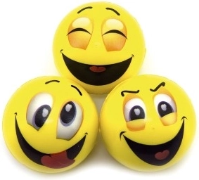 Cada pelota está decorada con un emoticono diferente, desde una sonrisa hasta sorpresa. Así los niños pueden elegir según su estado de ánimo e inventar juegos divertidos.