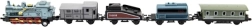 El set de tren con locomotora y cuatro vagones encantará a cualquier amante del ferrocarril. Gracias a la combinación de metal y plástico, los modelos tienen un aspecto realista y resisten el entusiasta juego infantil. Cada pieza tiene una longitud compacta de 8 cm, por lo que cabe fácilmente en la mano y en vías domésticas.