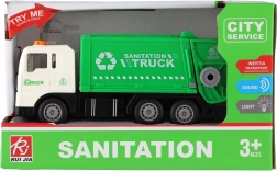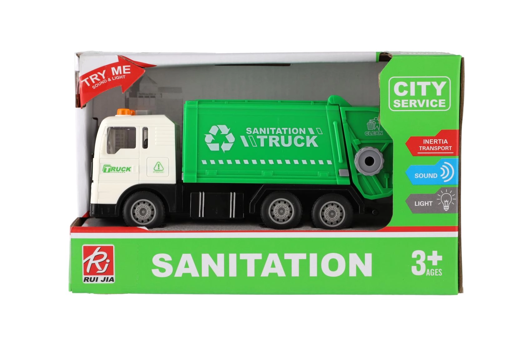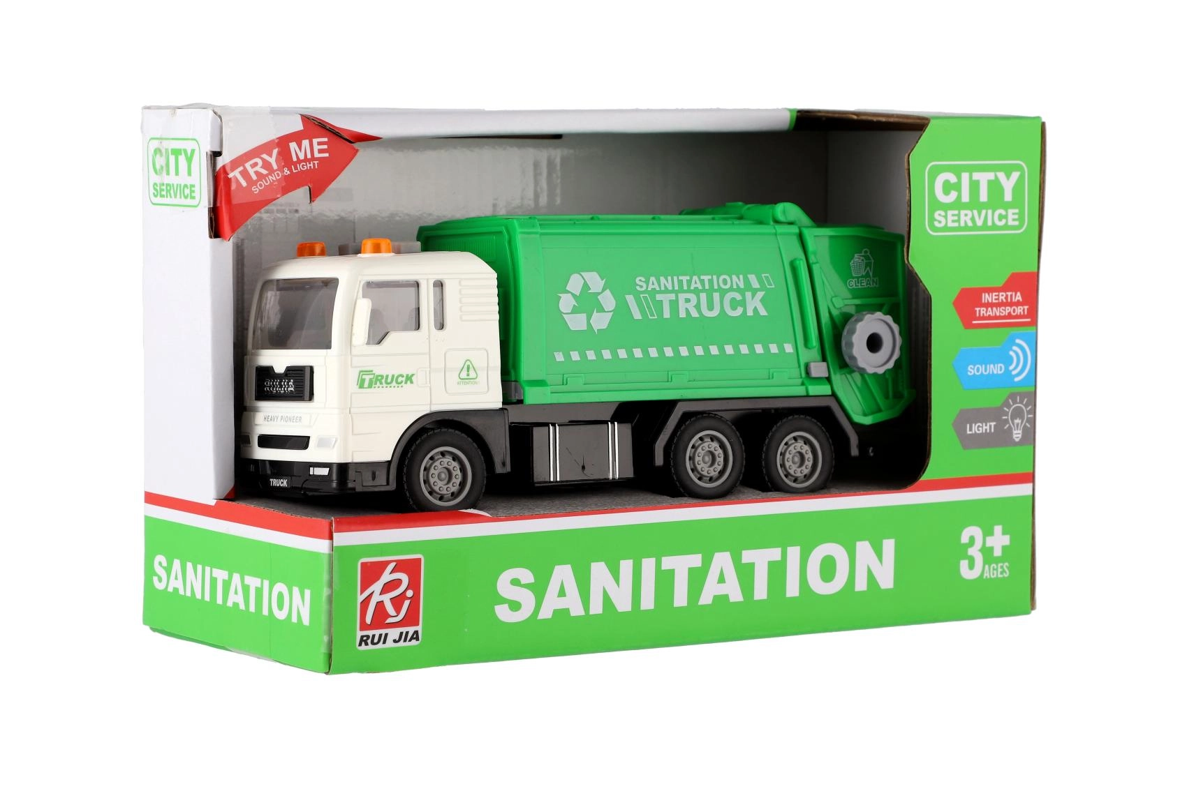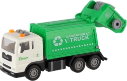 Elegante camión de basura para pequeños conductores que ofrece diversión realista gracias al mecanismo de fricción, luces tipo baliza y efectos de sonido. A escala 1:32, cuenta con un contenedor abatable y con apertura, para que los niños puedan vivir el verdadero trabajo de los recolectores de basura. Las pilas AG13 están incluidas en el paquete, por lo que el juego puede empezar de inmediato.