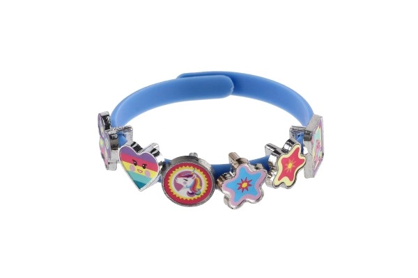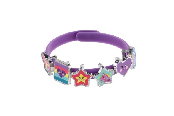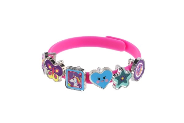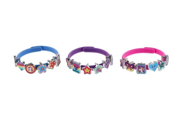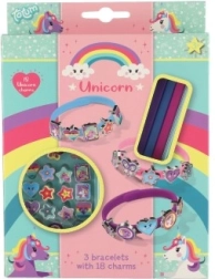 Descubre un mundo de fantasía con este alegre set para crear pulseras con temática de unicornios. En el paquete encontrarás tres pulseras elásticas en colores rosa, azul y morado, y dieciocho colgantes de colores con formas de estrellitas, corazoncitos, mariposas y personajes. Cada día puedes crear un estilo diferente: desde uno delicado hasta uno realmente llamativo.