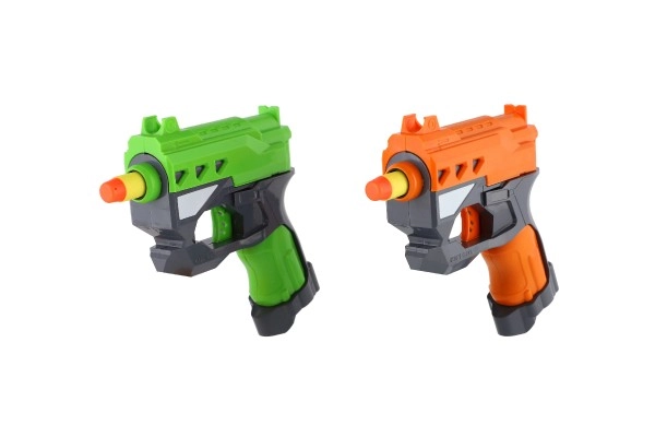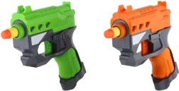 El diseño de plástico de calidad en colores atractivos (naranja y verde) es ligero, resistente y no requiere pilas. El paquete incluye 2 pistolas y 6 proyectiles, así que tendrás todo para un duelo justo nada más abrirlo.