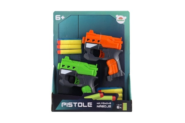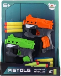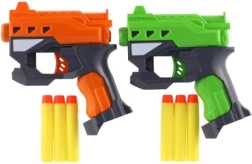 Este set de la marca Teddies ofrece un juego de acción seguro para niños y hermanos. Los proyectiles de espuma blandos se insertan fácilmente en el cañón; solo hay que amartillar manualmente y apuntar. Gracias a su tamaño compacto de 12 cm, las pistolas se sujetan cómodamente incluso por manos pequeñas, y el juego puede empezar en cuestión de segundos.