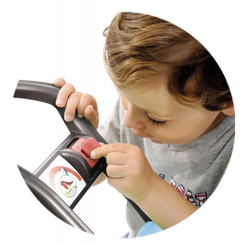 La imitación del interruptor y el “tirador” rojo de arranque que emite sonido aportan autenticidad al juego y estimulan la percepción sensorial.