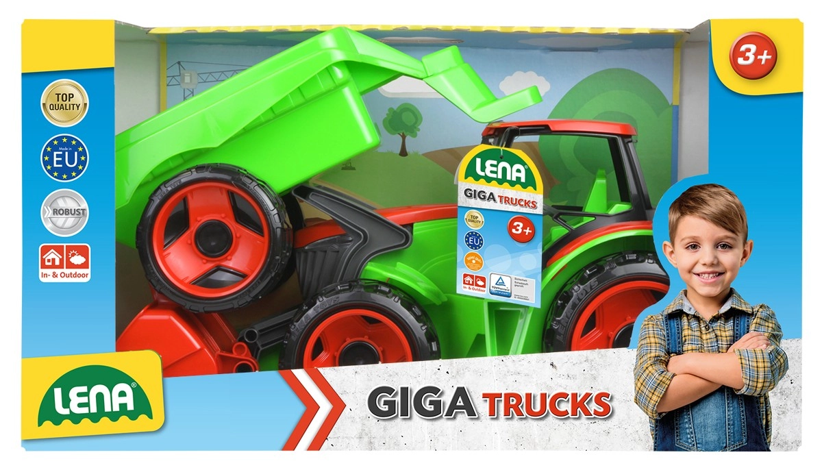 Descubre el robusto tractor infantil LENA con una gran relación entre diversión y durabilidad. La pala delantera y el remolque fomentan la creatividad e imaginación en juegos de construcción o granja. Gracias al plástico resistente y el enfoque en la calidad, soporta un juego intensivo diario.