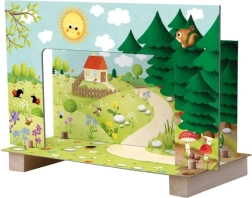 El teatro magnético con animalitos lleva un colorido mundo de cuentos directamente a la habitación infantil. Los decorados y figuras imantadas permiten un manejo fácil y fluido, para que los pequeños teatreros representen sus escenas favoritas e inventen nuevas historias.