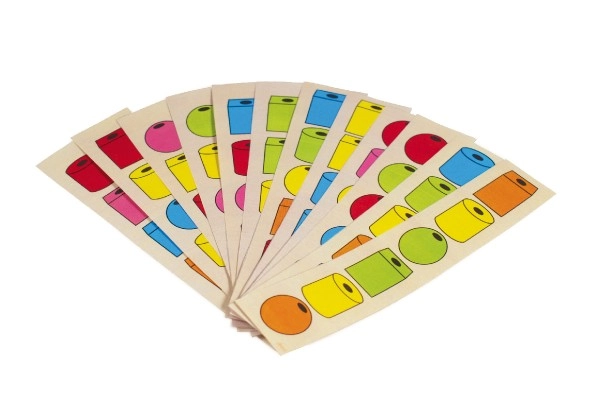 Cuentas de 20 mm de diámetro en diferentes formas y colores que se sujetan y se enhebran fácilmente, ideales para los primeros intentos de ensartar.