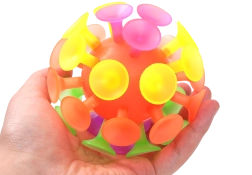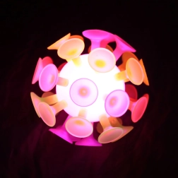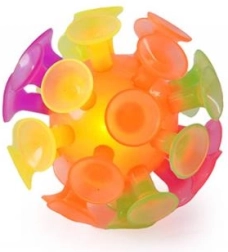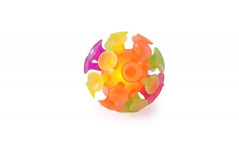 La pelota Sporto con ventosas y luz es una excelente opción para juegos activos. Gracias a las ventosas, después de lanzarla, se adhiere fácilmente a superficies lisas, y gracias a la luz integrada, se ilumina al impacto. Ideal para jugar, entrenar la agilidad y desarrollar la motricidad.