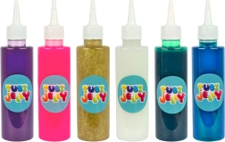 - 6 líquidos de gel (150 ml) en colores: rosa, blanco, morado, turquesa, azul y con brillo