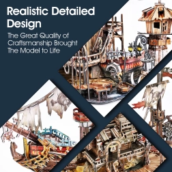 Embárcate hacia la legendaria Tortuga y construye tu propio puerto pirata. Este detallado modelo 3D de 218 piezas ofrece una actividad familiar divertida sin pegamento ni tijeras. Las piezas de espuma rígida de 3 mm con impresión laminada garantizan estabilidad y un bonito acabado. Con dificultad 5/7 y un tiempo de montaje de 180–220 minutos, es un desafío ideal para constructores pequeños y grandes.