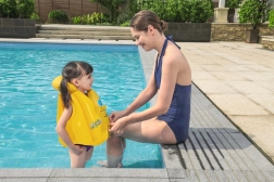 El chaleco de natación para niños Bestway está diseñado para proporcionar la máxima seguridad gracias a sus tres cámaras de aire independientes. El cuello de flotación garantiza que la cabeza permanezca por encima de la superficie del agua. Gracias a las hebillas ajustables, se pone fácilmente y se adapta bien al cuerpo del niño. El chaleco está decorado con un alegre pulpo azul, que atrae la atención y motiva a los niños a nadar.