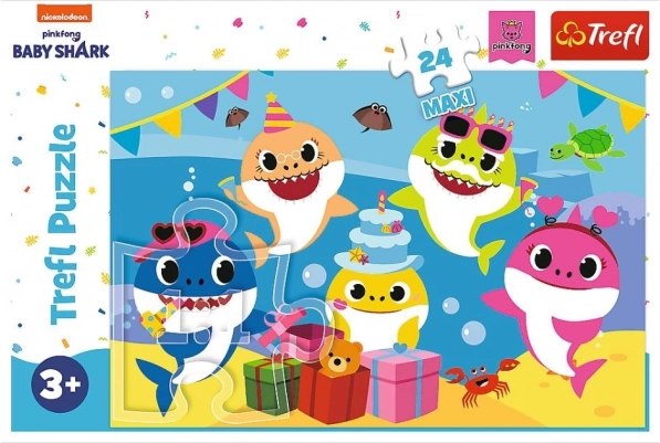Baby Shark Alegre es un rompecabezas grande compuesto por 24 piezas extra grandes que encantará a todos los amantes de los animales marinos. Una vez montado, crea una imagen grande de 600x400 mm.