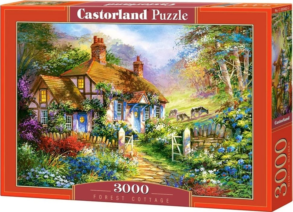 Descubre la calma y la magia de la naturaleza con el rompecabezas Forest Cottage de 3000 piezas. Una vez completado, crea una imagen de 92 × 68 cm con una idílica cabaña en medio de la vegetación. La alta calidad de impresión, los cortes precisos y los colores intensos garantizan el placer del montaje y un resultado final impresionante.
