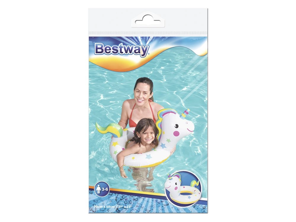 El adorable flotador inflable BESTWAY con forma de unicornio encantará a todos los pequeños nadadores de 3 a 6 años. Gracias al resistente material de PVC, la válvula de seguridad y sus dimensiones compactas, es ideal para piscina, playa y lago. Se infla y desinfla fácilmente y ocupa un espacio mínimo en la bolsa.