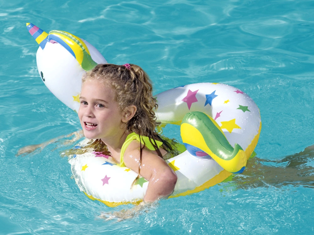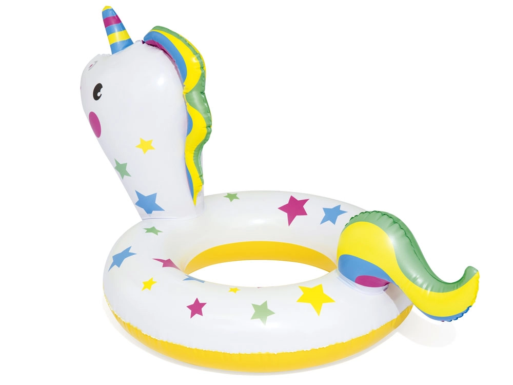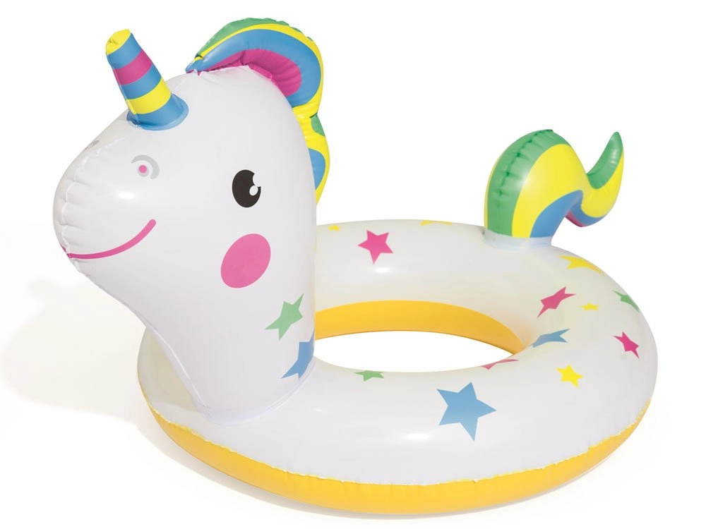El flotador infantil BESTWAY con forma de divertido unicornio ayuda a ganar confianza en el agua y aporta mucha diversión. Los vivos gráficos con estrellitas llaman la atención a primera vista, mientras que el material resistente garantiza una larga vida útil incluso con uso frecuente en la piscina o en el mar.