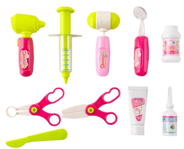 Desde el estetoscopio y el termómetro hasta la jeringa: el amplio set fomenta la creatividad, la motricidad fina y las habilidades sociales jugando a ser médico.