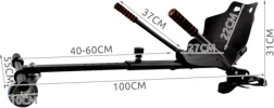 El bastidor robusto de metal y materiales duraderos está diseñado para una seguridad y larga vida útil. El ajuste continuo de longitud de 40–60 cm permite una adaptación precisa a la complexión del piloto, mientras que la rueda delantera giratoria garantiza una maniobrabilidad suave. El montaje es rápido y sin herramientas: con abrazaderas resistentes y correas ajustables de velcro fijarás el adaptador fácilmente a distintos tipos de hoverboards.