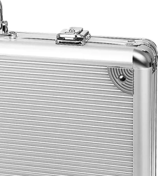 - Resistente maletín de aluminio con cerradura y asa ergonómica