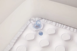 La bañera/piscina inflable Bestway BABY STEP 1-2-3 ofrece a tu bebé un entorno cómodo y seguro para el baño y sus primeras aventuras acuáticas. La forma cuadrada de 86 × 86 cm brinda espacio suficiente, mientras que el suelo inflable es suave, agradable y ayuda a prevenir deslizamientos.
