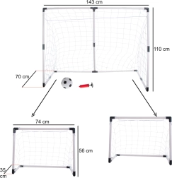 Esta portería de fútbol 2 en 1 es ideal para los pequeños futbolistas que quieren probar sus habilidades tanto en el juego como en el entrenamiento de tiro a puerta. Su diseño único permite montar una portería grande con dimensiones de 143x110x70 cm o dividirla en dos porterías más pequeñas de 74x55x35 cm.