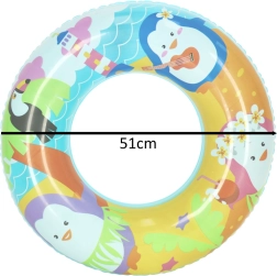 Ligero y fácil de transportar, el flotador inflable de 51 cm de diámetro es ideal para los primeros juegos en el agua. Gracias a su atractivo diseño con pingüinos, motiva a los niños a moverse en el agua y al mismo tiempo refuerza su confianza al aprender a nadar.
