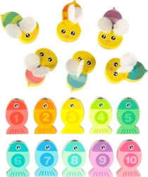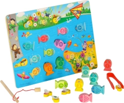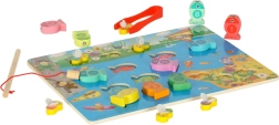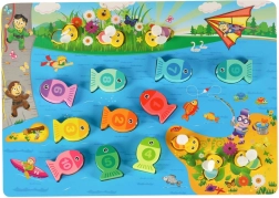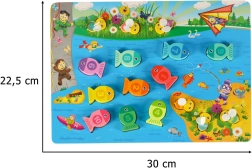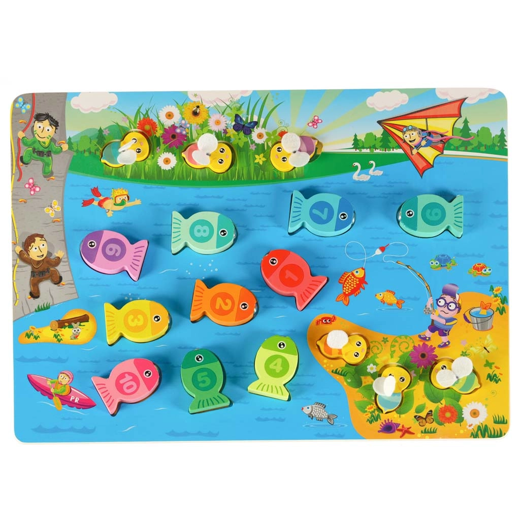 Este creativo set Montessori ofrece a los niños tres formas de jugar: pesca de pececitos con imán y caña, inserción de peces con números en los orificios correctos y entrenamiento de la motricidad fina con abejitas usando pinzas. Los elementos coloridos motivan al juego, mientras que la fabricación en madera de calidad con bordes redondeados garantiza la seguridad.