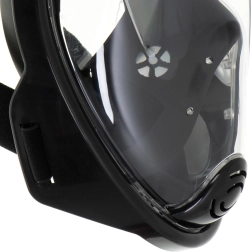 Esta moderna máscara facial completa es ideal para el snorkel recreativo y actividades acuáticas ligeras. Su amplio campo de visión proporciona una excelente percepción de lo que ocurre bajo el agua, y los canales separados para la inhalación y la exhalación minimizan el empañamiento del visor.