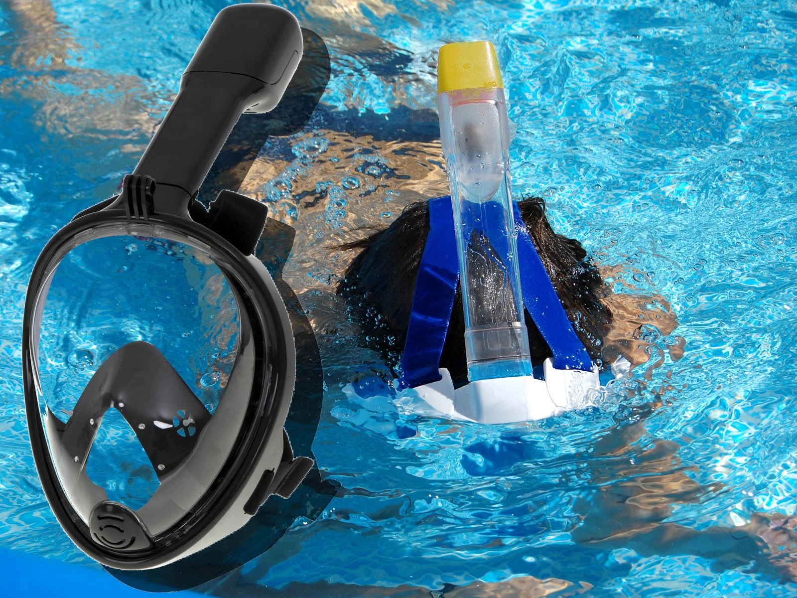 Gracias al tubo integrado con sistema dry-top, se reduce notablemente el riesgo de entrada de agua. Las correas elásticas totalmente ajustables sujetan la cabeza de forma cómoda y segura para un sellado eficaz. El paquete incluye tapones para los oídos y un soporte para cámara de acción (p. ej., GO PRO), para que puedas grabar fácilmente tus experiencias.