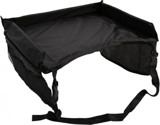Práctica mesa de viaje para sillas de coche infantiles y cochecitos, fabricada en material impermeable, ofrece una superficie estable para jugar y comer. Gracias a las correas ajustables y a los bolsillos laterales de malla, todo lo necesario está siempre a mano y el viaje es mucho más cómodo para niños y padres. La estructura estable, la superficie impermeable y la instalación rápida la convierten en el accesorio ideal para viajes en coche, autobús y avión.