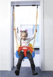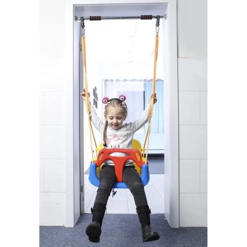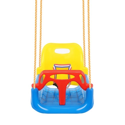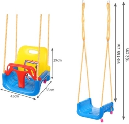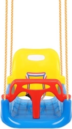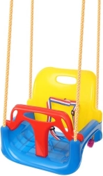 Este colorido columpio 3 en 1 es una opción excelente para bebés y niños mayores. En configuración con barra en T y respaldo alto, transporta con seguridad a los más pequeños; más tarde, se pueden retirar las piezas delantera y trasera y convertirlo en un asiento clásico. Los arneses de seguridad con regulación sujetan firmemente al niño, mientras que la textura antideslizante del asiento evita resbalones incluso en juegos más movidos.