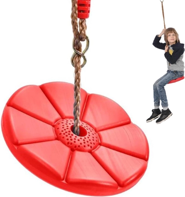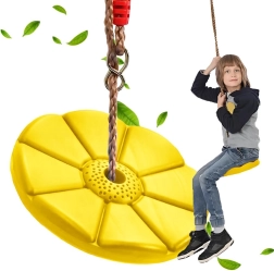 Este columpio con asiento liso en forma de flor es ideal para el jardín, la terraza e incluso interiores. Gracias a las cuerdas ajustables, se cuelga fácilmente de un árbol o estructura de juegos y brinda a los niños actividad física y diversión al aire libre.