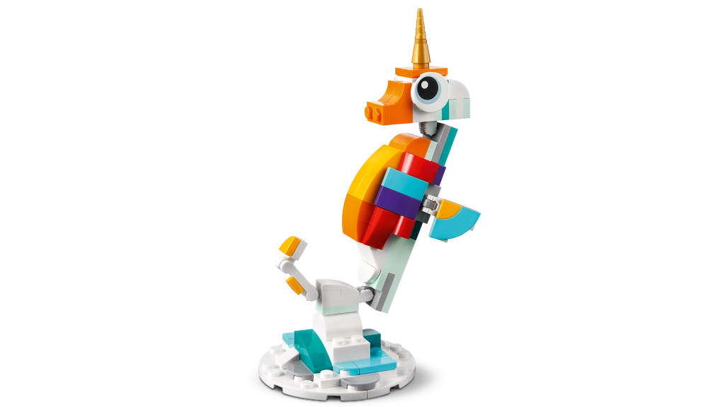 - 3 modelos en 1: unicornio mágico, caballito de mar y pavo real