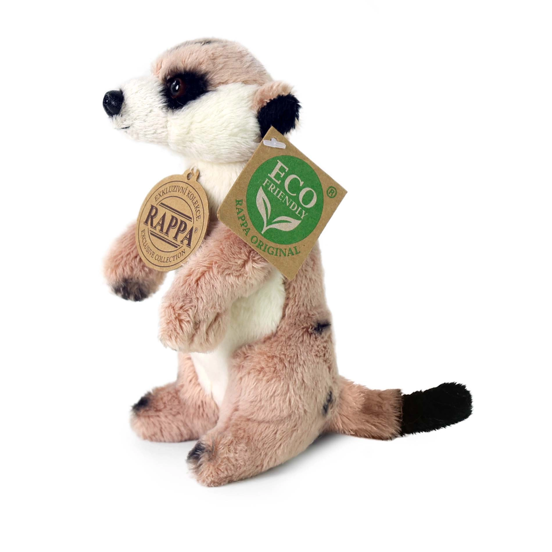 Adorable suricata de peluche de 14 cm que encantará a pequeños y mayores amantes de los animales. Está hecha de peluche de alta calidad y suavidad, y cuenta con relleno eco-friendly de botellas PET recicladas. Gracias a su acabado realista y a la fabricación artesanal, resulta muy fiel y es segura incluso para los más pequeños.