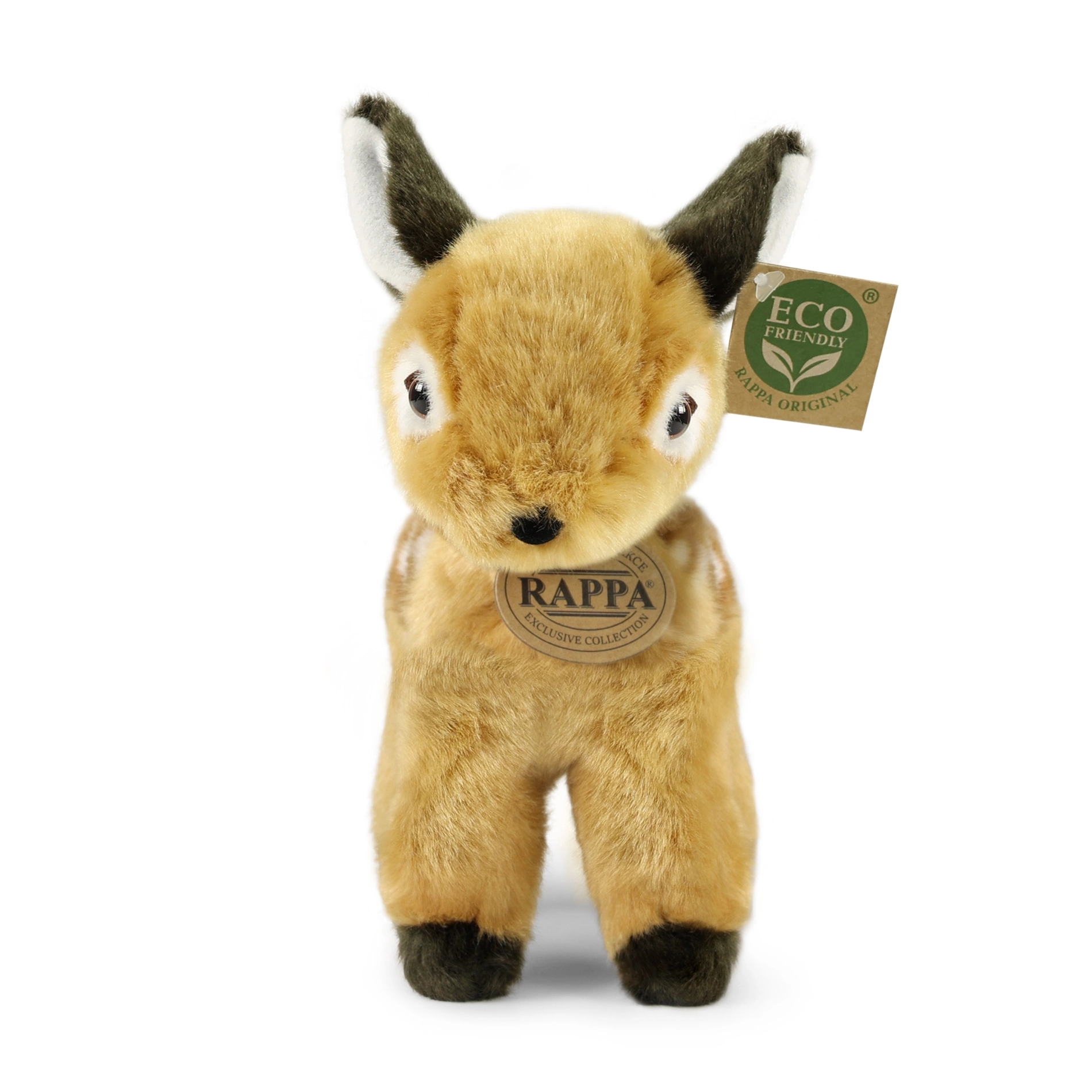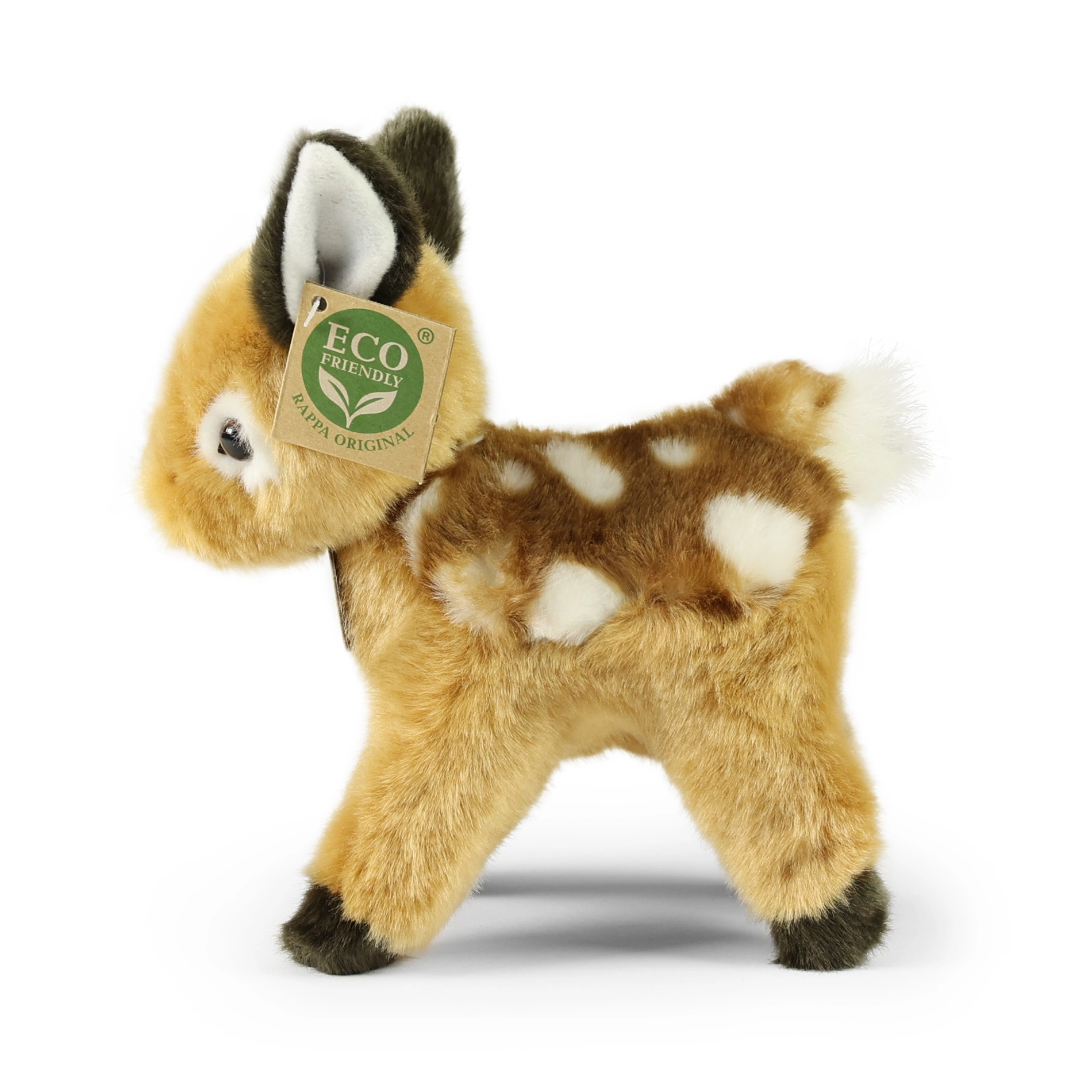 Adorable cervatillo de peluche de 22 cm de la marca RAPPA, hecho de felpa de alta calidad y con un suave relleno eco‑friendly de botellas PET recicladas. Encantará a pequeños y mayores amantes de los animales por su apariencia realista, acabado artesanal y materiales seguros aptos desde el nacimiento.