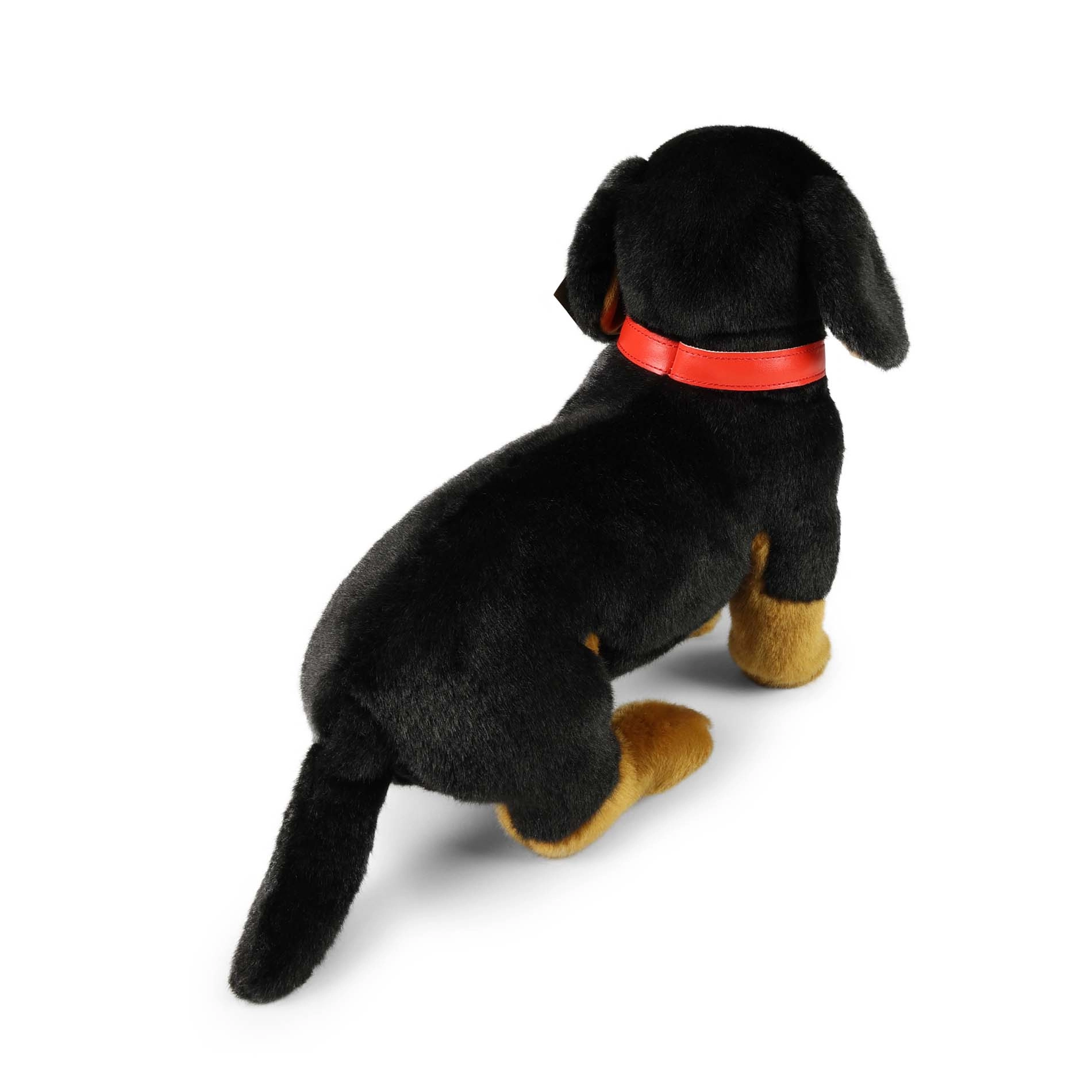 Detalles elaborados, ojos expresivos y un pelaje muy suave hacen de este perro salchicha el compañero perfecto para acurrucarse y jugar.