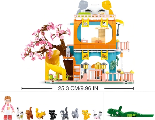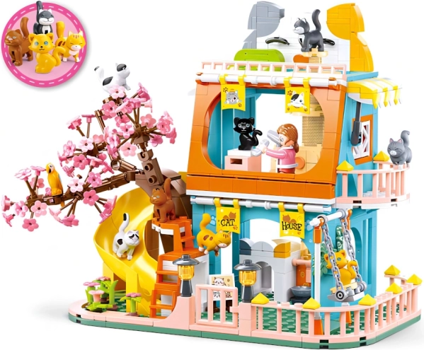 Sumérgete en un mundo de fantasía con este set de construcción Sluban Casa con Gatos. Ideal para niñas que disfrutarán horas de diversión construyendo y jugando con figuras y animalitos.